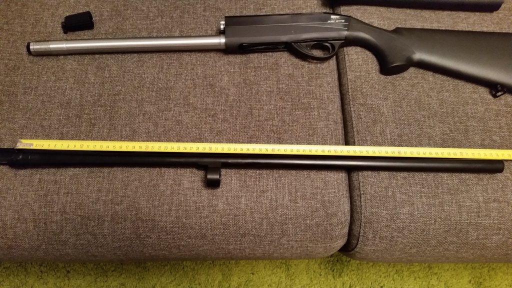 на самом деле вопрос интересный. Чем короче ствол тем он точнее в плане стрельбы пулей. Если Вы не планируете много стрелять именно пулей, то Вам пулевой ствол и не нужен. Даже длинный 760мм дробовой ствол Хана на 40м обеспечивает нормальную точность и кучность. Вот для примера пуля YAF "полетела" и кучность хорошая и точность ( там 5 пробоин в мишени. Две овальных сбоку это пыж-контейнера прилетели), а вот mega не пошла. И поэтому вытекает другой вопрос- пулевой ствол Вы можете настроить под любую пулю, а вот под дробовой надо будет саму пулю подбирать .