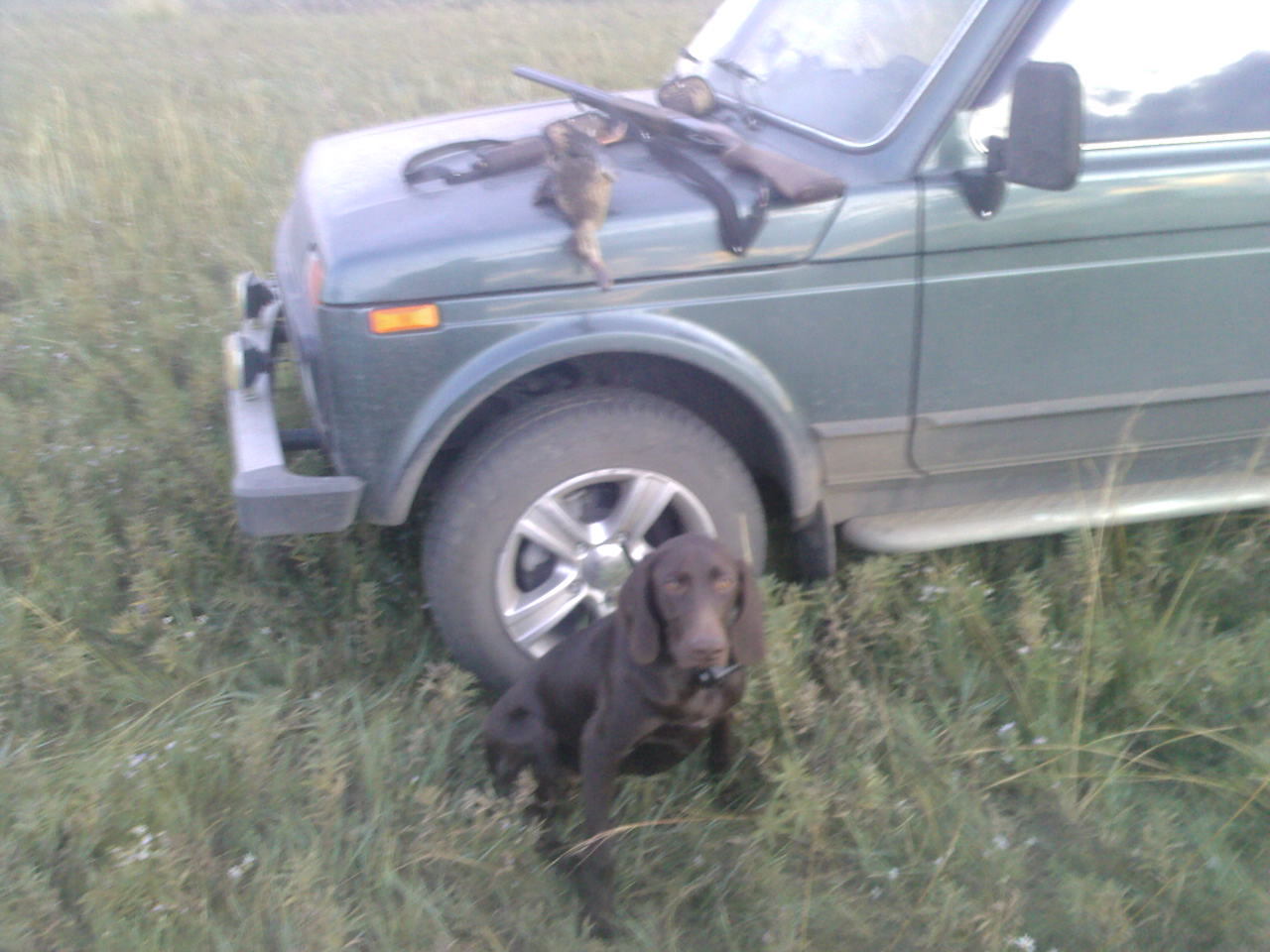 В поле и лесу Джуда с удовольствием аппортирует дичь. Которую я выслежу и добуду :-) А вот с воды утку подавть не хочет, доплывает до нее носом ткнется и обратно (хотя туже утку которую я закидываю в камышь, идет-находит и приносит)