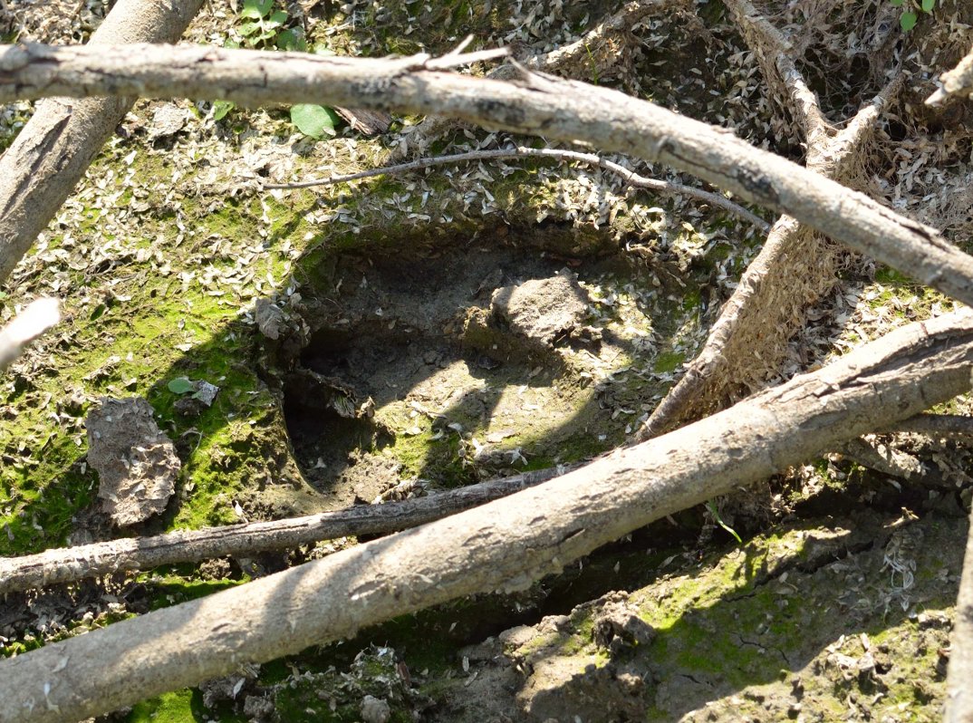 Сфотографировал вот такие следы. Для масштаба - крышка от объектива, ее диаметр - 67 мм. Чьи следы это могут быть?