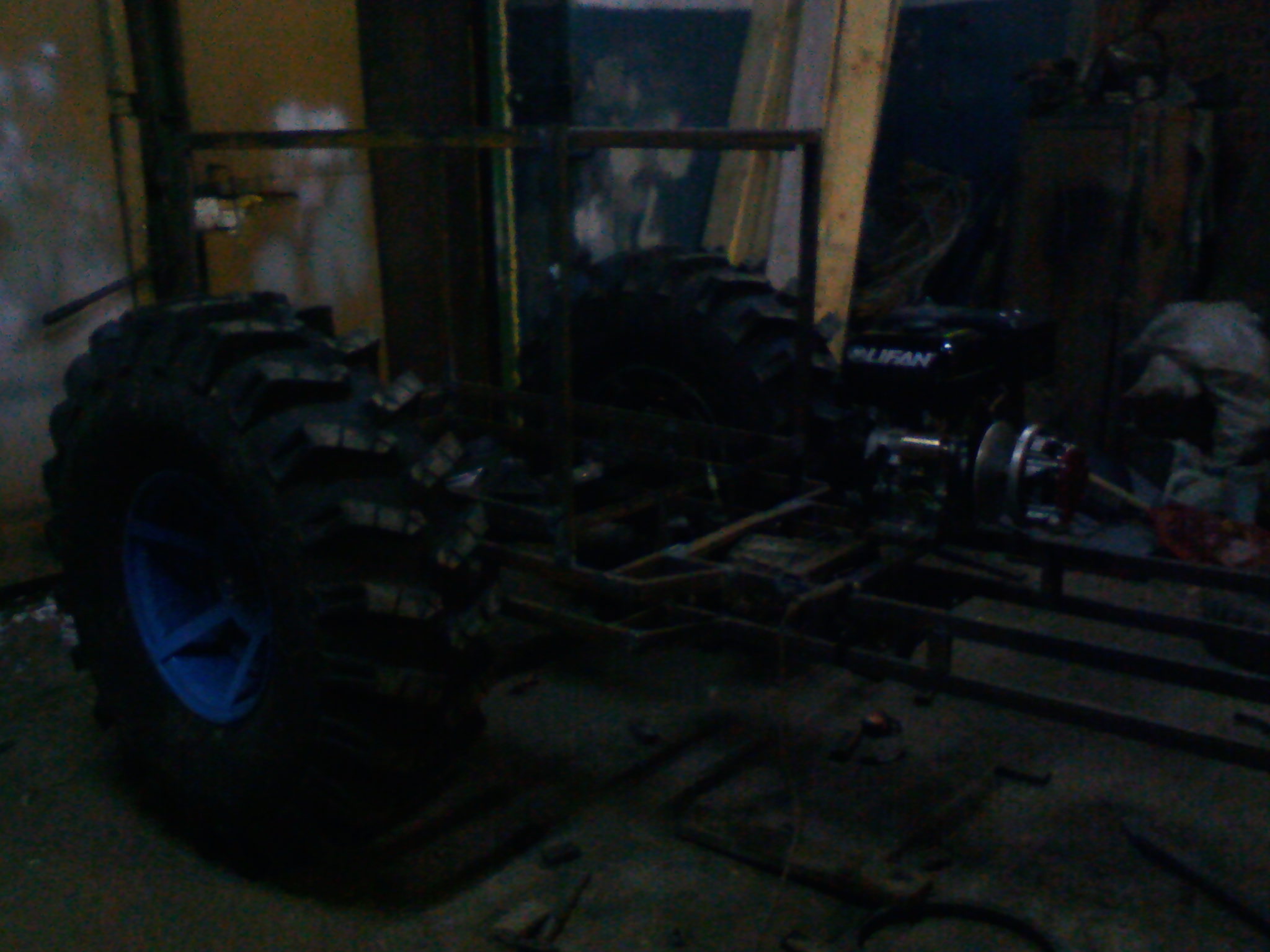 Самый оптимальный вариант это шишкотряс с двиглом от инвалидки, Иж-Планета с принудиловкой.Доплнительная коробка от Жиги,ломающая рама, привод на передние колеса (принцип 4Х4 сложен и утяжеляет каракат), тормоза на каждое ведущее колесо, что бы блокировать при буксовке, резина желательно заводская типа Трэколов, задняя пара колес меньше диаметром(легче рулить и "ломать раму", при буксовке.С зади кузовок, а 2 сидячих места рядом над ведущих колесах.Ну и накрайняк типа кабриолетовской крыши складной с брезента. Все остальные усложнения пойдут во вред, ненадежность, утяжеление конструкции. Это мое МНЕНИЕ, прошу сильно не ругать!