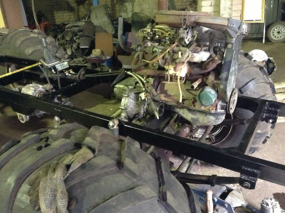 а я ноне ежли Бог даст, буду делать без раздатки, просто двиг с коробкой 2108, мосты уаза, ну и колёса 1200-508-370.