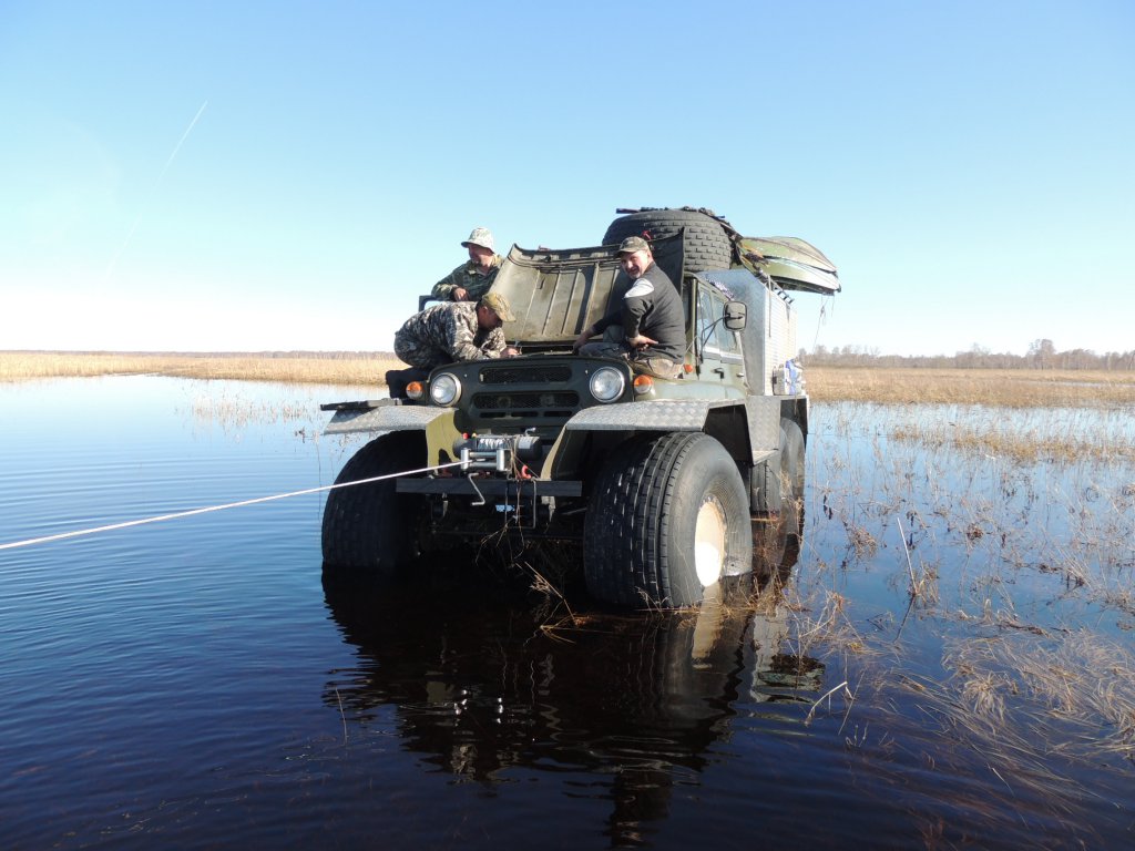 Что еще хотел отметить из минусов, очень высокий центр тяжести и большой вес. Из-за этого самоходка на воде держится не уверенно так и наровит перевентутся к верх колесами и еще нужен шноркель, а то при штурме одной из водных преград (глубиной порядка 2метров) движок хватанул воды хорошо гидроудар не словил, а тупо заглох. Если бы не лебедка так и унесло бы по течению в речку. Вобщем я доволен :good: