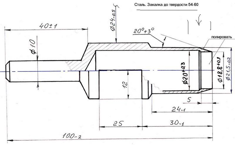 так я вам мужики чертеж скинул могу на почту отправить! металл нужен хороший и закалить требуется обязательно! внутрений диаметр ставьте сами кому какой нужен! у меня такой как на чертеже для картона и пробки, для войлока на 1мм больше.