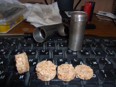 для полузарядов можно использовать, по рябчику или белке. обтюратор на порох, амортизатор вырезать и заменить двп по нужной высоте под закрутку, контейнер заполнять в ровень с краями.