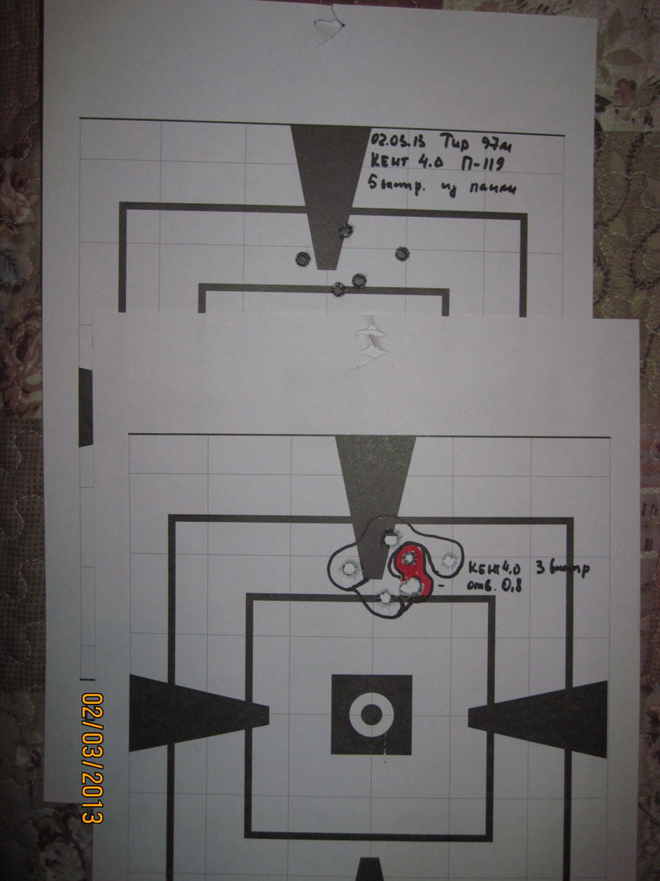 Отстрел показал определенный парадокс, в котором я не разобрался, да в общем-то и не горю: хорошо полетел тяжелый Кентавр и легкий Геко. Но так как они полетели совершенно одинаково, и качество мишеней меня устраивало я, естественно, остановился на более дешевом варианте: Кентавр 4,0 гр, с пулей НР парти П-119 за 14 рублей патрон (брал сразу после Нового года, ещё до подорожания)