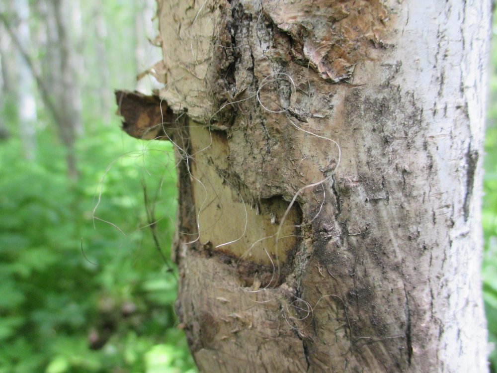На моем снимке тоже видны следы от клыков, это у них паверное фишка такая, "глодануть" и потом почесаться, по метить. Много мне их не, не надо, пожрут всех зайцев и тетерь.