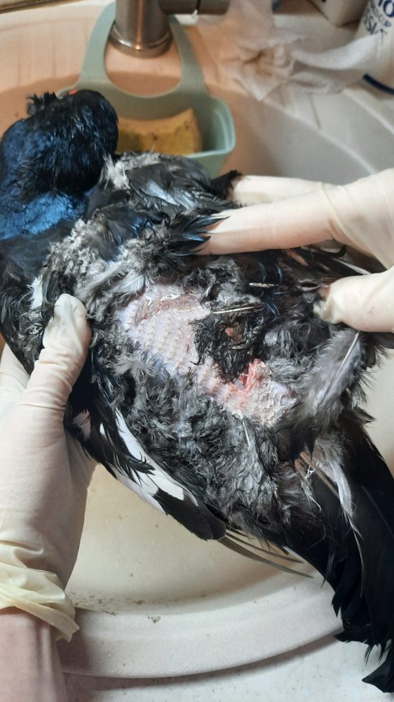 Товарищ прислал фото добытого тетерева. Ваше мнение откуда или от кого такие раны на нем?