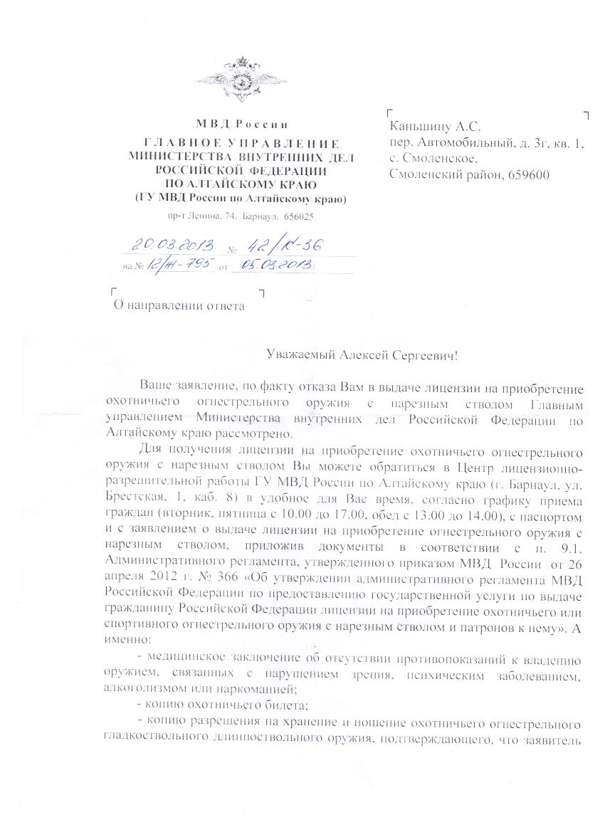 Как мы пытаемся получить лицензию на нарезное в Алтайском крае.