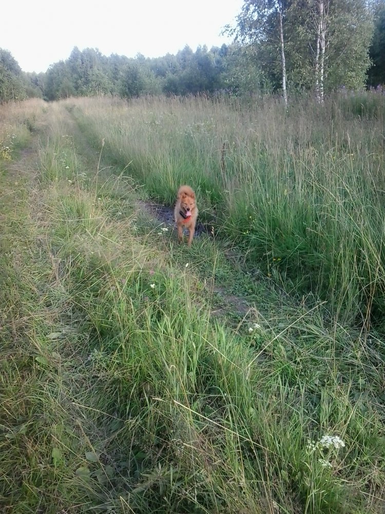 Сегодня под вечер поехал с рыжим в лес, на улице 25 гр тепла, встречались свеженькие кабаньи раскопки, следы лосей, двух местах старенькие следы косолапого. Покошенном месте рыжик уходит до 200 метров, думаю для 10 месячного кобелька не плохой поиск. А где метровая трава, там уже кфл не помощник, в глубоком лесу нашли не плохой бобриный рай, и рядом были лежки кабана растеленный муравейником. Рыжик учуял бобров, но так как его не хочу ставить на бобра увел. Больше голоса от собаки не было.