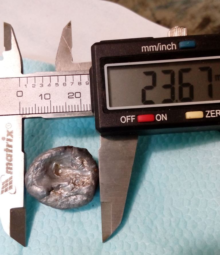 — при обычном заряде: глубина 5,7 мми диаметр 22,4 мм.