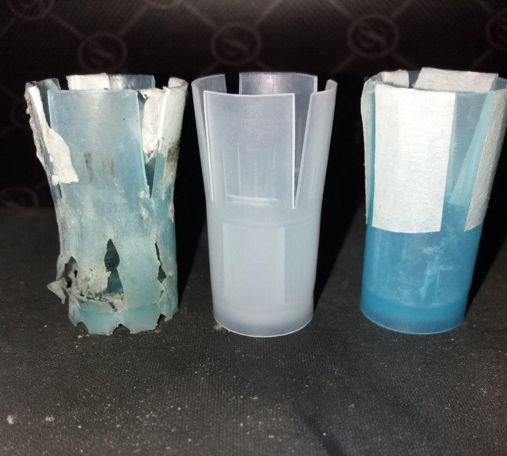 Может кому пригодится, нашел лучший вариант разреза контейнера под тринар от корала,с лева лучший вариант от корала Алексея,но он плохо высвобождая дробь ,рядом максимально широко вырезаны три крыла их усилия раскрытия равно четырем обычным контейнерам ,вот так дробь всю четко освобождает,убрал умортизатор из-за него на тринаре был увод центра осыпи в сторону почему то