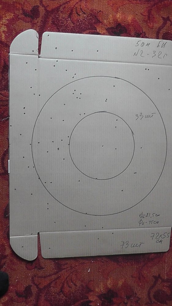 На этой мишени 2 выстрела. 1- пулей пришёл тубо 40 гр, с 30 гр.снарядом. 2- с чоком 1.7. Т.е. раскрытие можно подбирать дульными насадками.