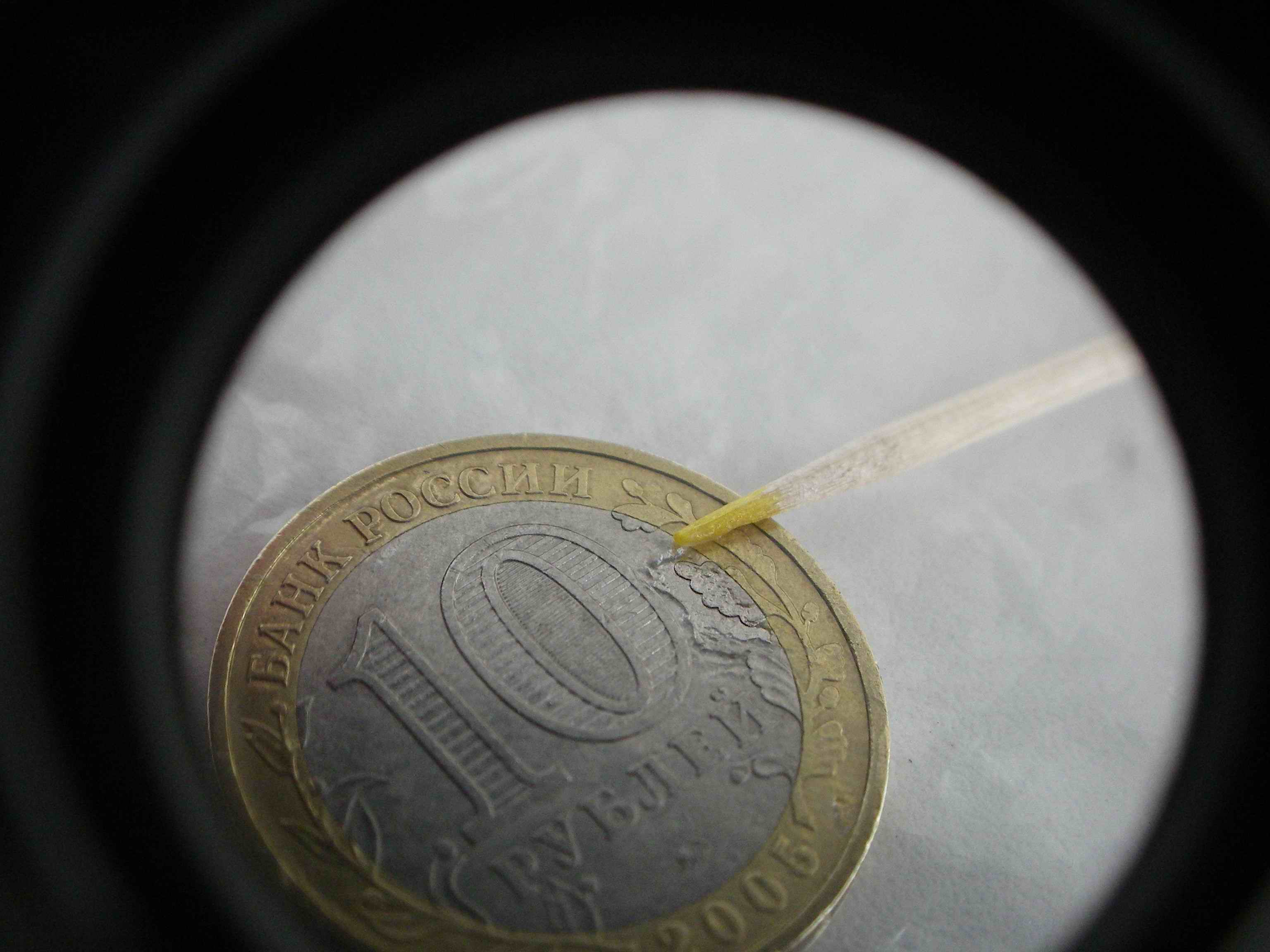 Все монеты я немного потер зубочистками в одном и том же месте (чтобы легче искать на фото- в районе между цифрой "0" и листьями дубка в правой части монет).