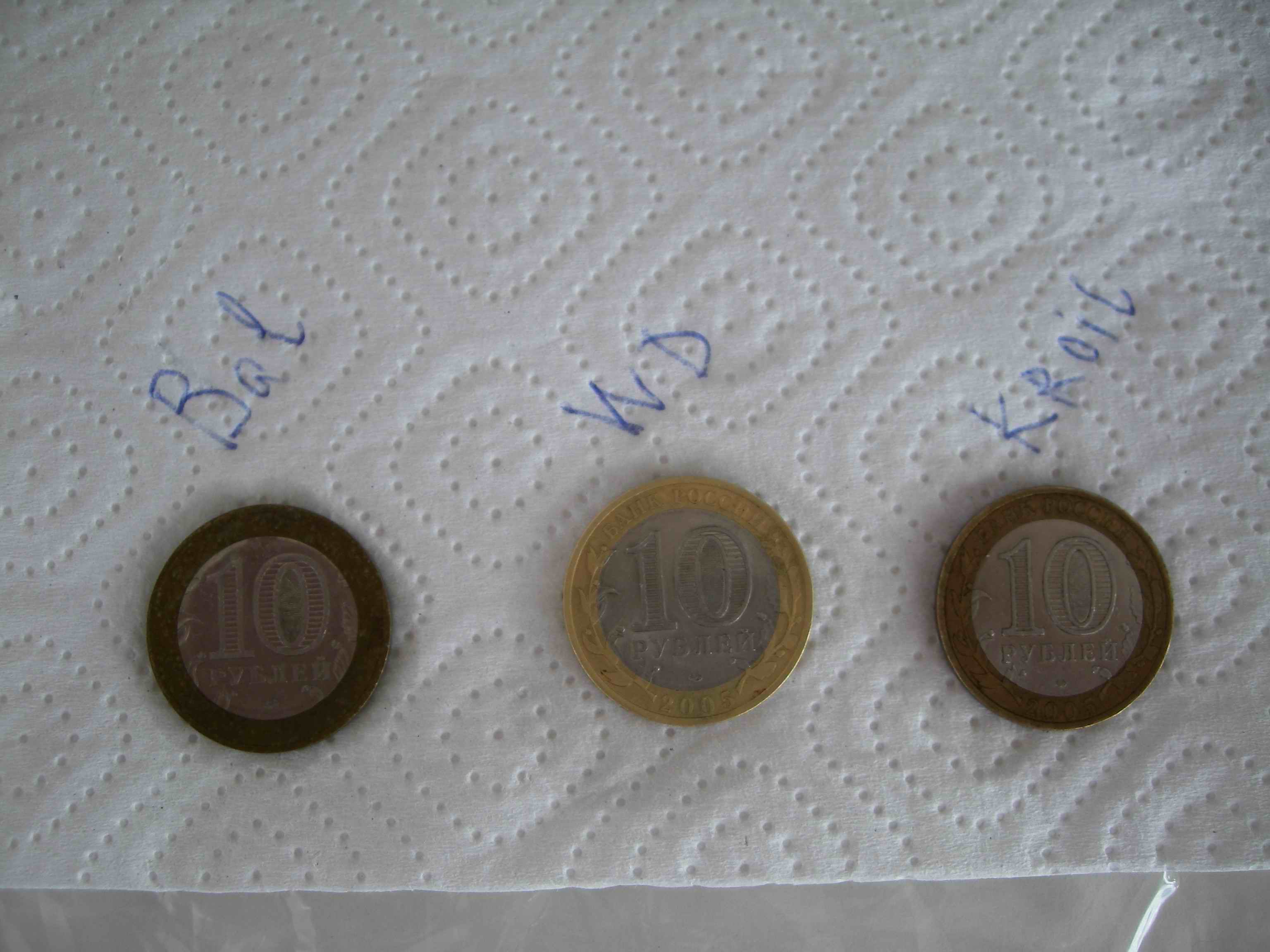 По "чистым" монетам - теперь буду ждать до тех пор, пока какая-то первая из монет не начнет ржаветь. Это последнее, что на них планировалось посмотреть.