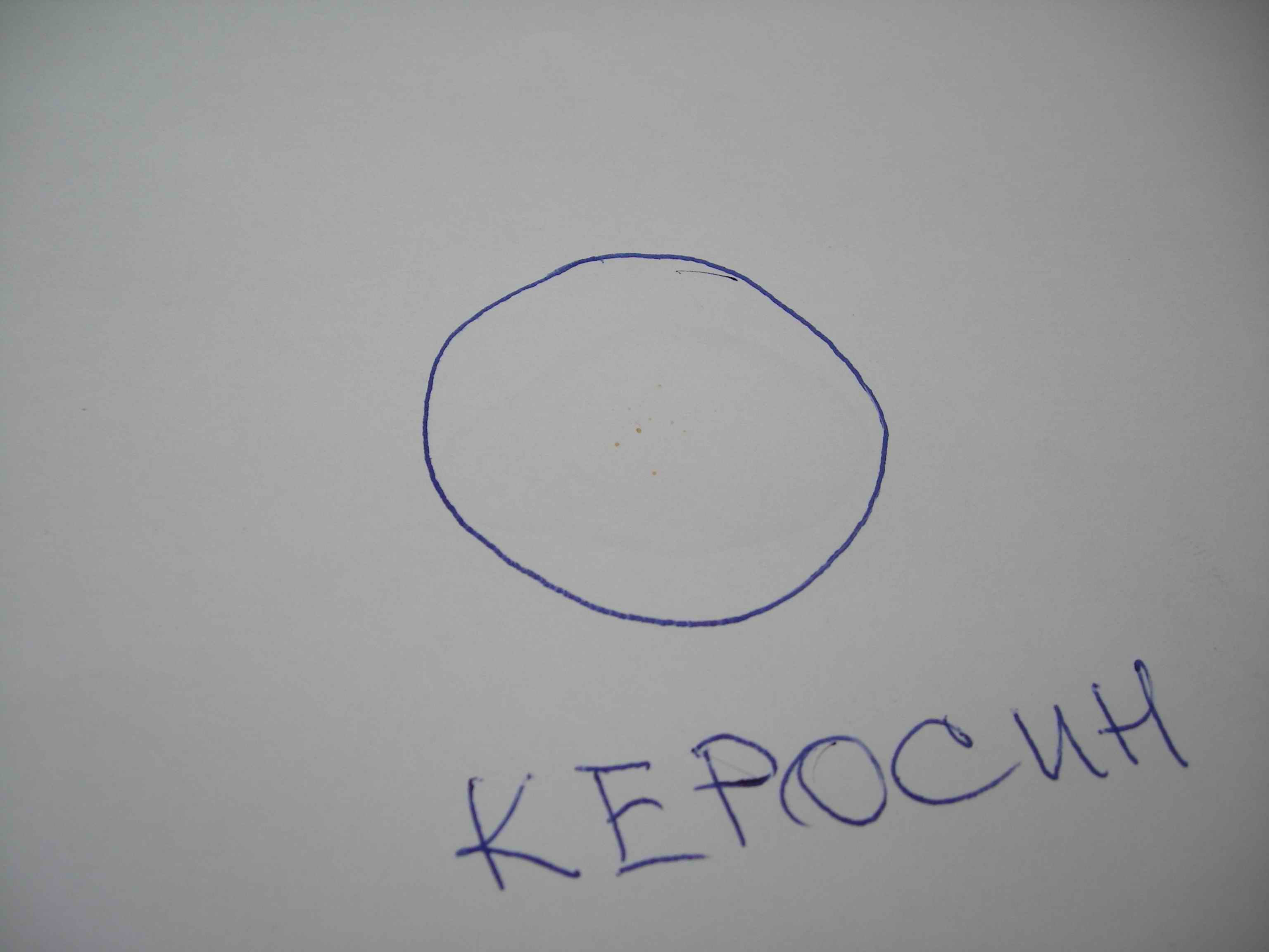 4. Смотрим, что имеем "в сухом остаке", т.е. следы на бумаге. У бензина - их нет. У керосина - они есть.