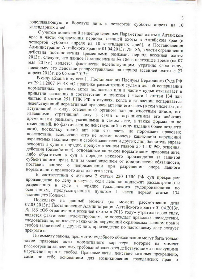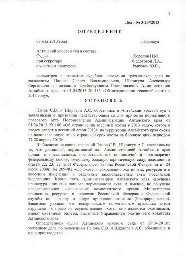Судебное разбирательство по запрету весенней охоту 2013