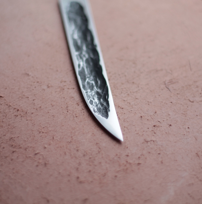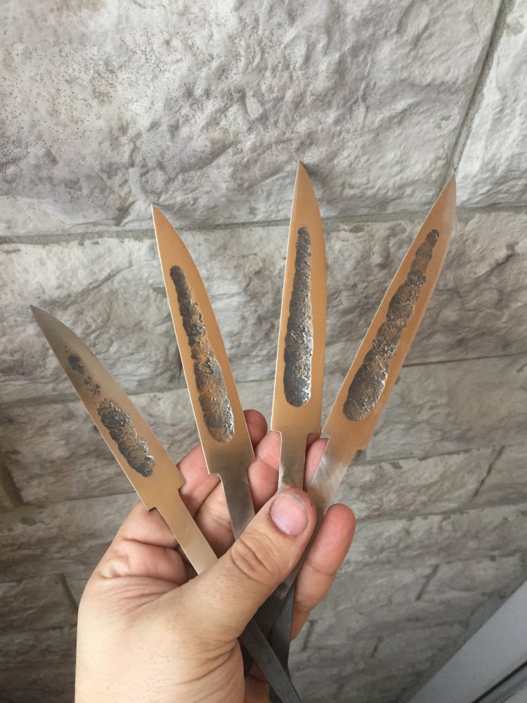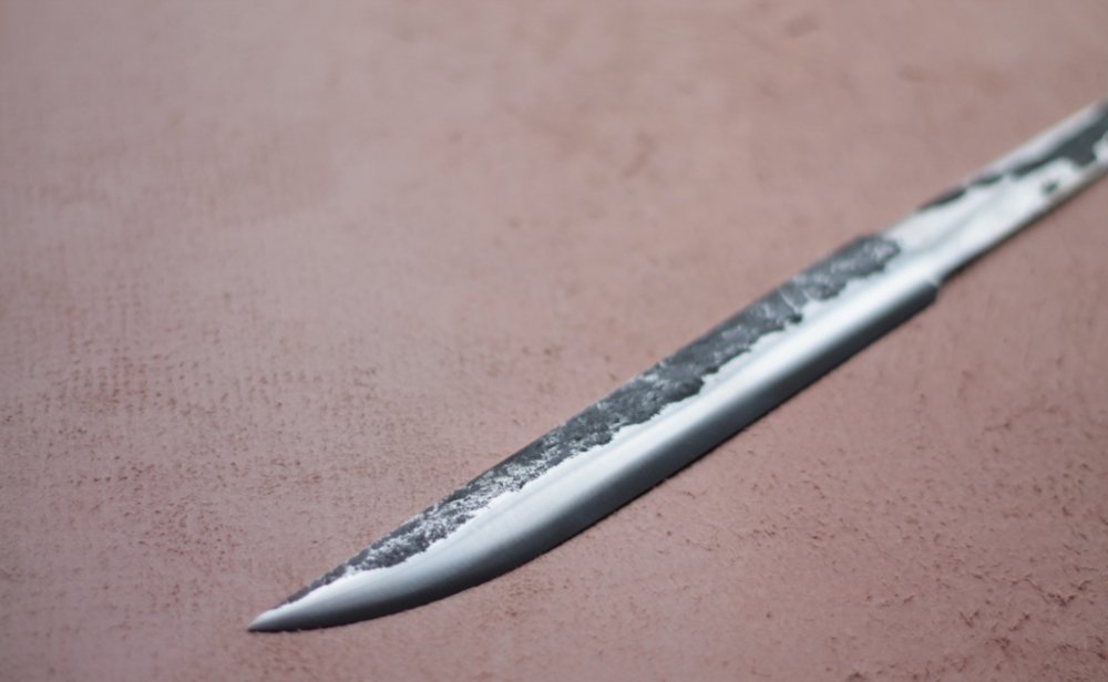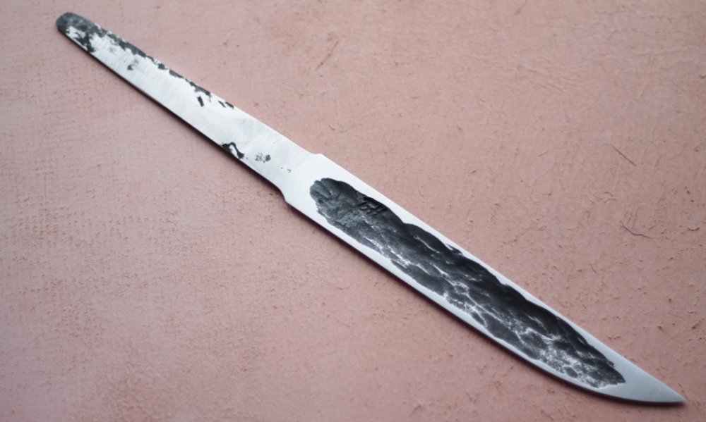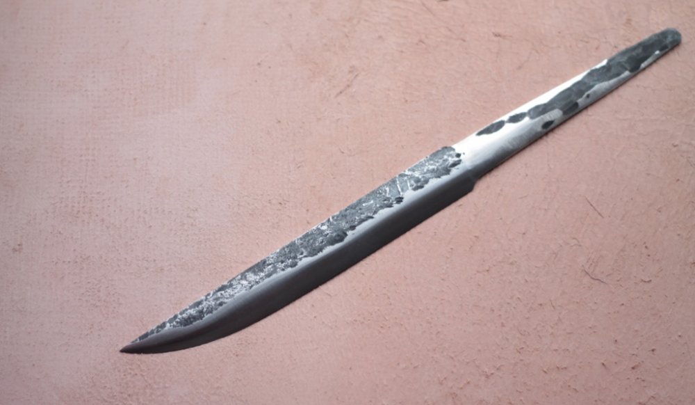 - клинок кованный из Х12М, длина клинка 139 мм, ширина в самом широком месте 23 мм, толщина клинка у рукояти по линзе 3 мм.