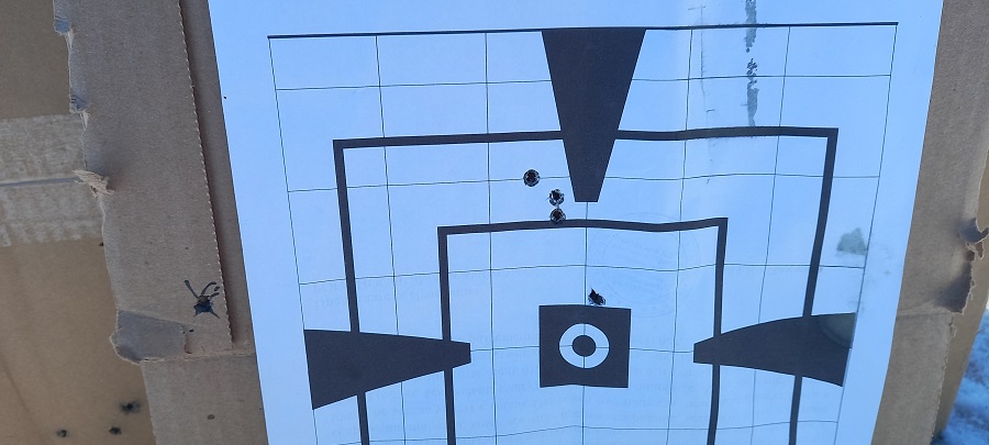 У нас появились эти патроны недавно. Взял два типа для проверки. У Armscor SV SP на хроне показало очень сильный разброс скоростей от 310 до 344мс при заявленных 330мс. Думал хрон на морозе глючит, но поставил последовательно два разных хрона получил схожие скорости на них. Пострелял на 50м и 100м получил постоянные вылеты из кучки. Причём для обоих типов патронов. У НР скорость заявлена 370мс, на хроне получил примерно эту скорость, но тоже выбросы были, хоть и меньше. Видимо это и причина выбросов. Я уж поначалу подумал, что стрелять разучился и сжёг почти все патроны на 50м пытаясь добиться хорошей кучности. Потом проверил на фиочи, успокоился - эти намного лучше прилетели. В общем то и филипинцы чаще показывают несколько попаданий в хорошую группку, но выбросы портят общую картинку. В следующем сообщении покажу стрельбу на сотню м.