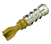 1 – свинцовая рубашка, 2 – стальной сердечник (резьбовая шпилька), 3 – хвостовик с оперением, 4 – гальваническое покрытие (хром), 5 – углубление, увеличивающее экспансивное действие пули, 6 – скосы на оперении, придающие пуле вращательное движение на траектории