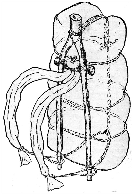 все началось с поняги, а продолжилось каркасными рюкзаками. поняга не имеет объема, все зависит от того сколько завернуть в брезент и закрепить ремнями. сейчас самое время срубить нужную талину. к осени просохнет на распялках.