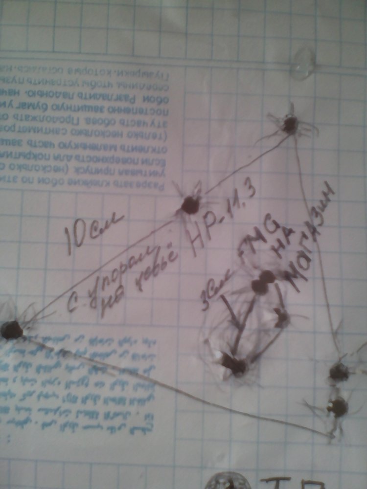 На первой фотке надпись не правильная, ошибся, там с магазина стрелял. Суть в чем, стрелял как обычно с упором на цевье и потом на магазин, почему то с магазина кучка лучше гораздо. Расстояние 130м. Кто знает прошу объяснить!