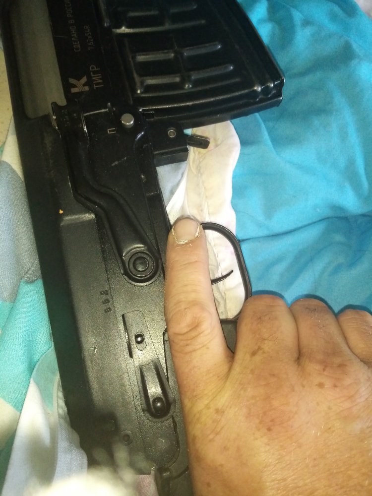 Вчера случай подвёл меня к рассмотрению вопроса об удобстве предохранитель! В общем случай такой что очень быстро надо было снятся на огонь, но пока руку туда потом обратно, я понял что эти доли секунды по сути могли стать роковыми, будь это не глюк, а реально медведь! Теперь я понимаю, чем не удобен Акашный предохранитель, не щелчка и, а тем что руку надо тянуть. Вот задумал поставить или переделать что бы как современный был, под указательный палец. Что посоветуете!