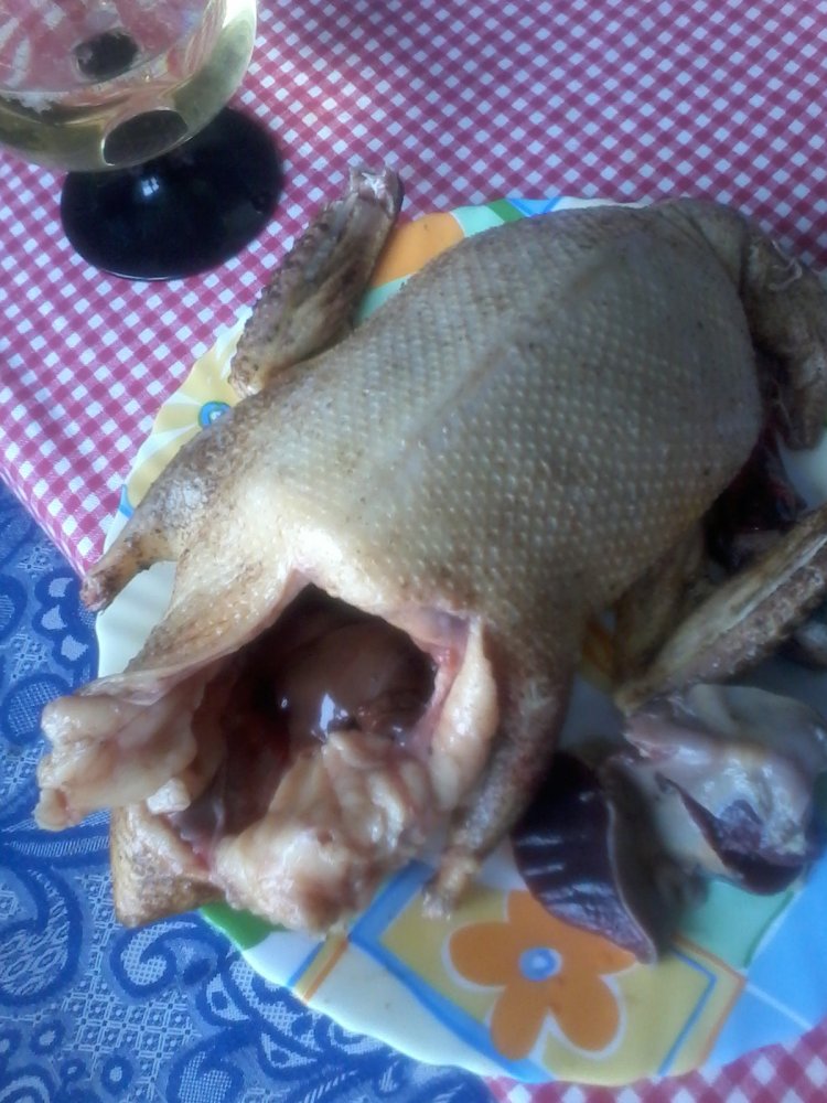 У них(кряквы не домашней) к концу сентября жир ручьём бежит.Более месяца ,ежедневная кормежка в полях.Горох,ячмень.