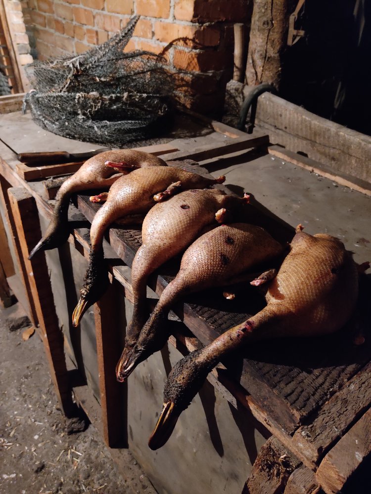 После обеда в субботу вернулись на озерцо где встали с чучелами утром.... Вот те раз - машина чья-то стоит... Хотя видят что лодка наша и вещи... По пути на точку обгоняем двух пожилых мужичков - сетешки ставят на карася, с ружьями... Крайнюю сеть они чуть ли не в наши чучела затянули, встали с ружьями почти напротив метрах в 120, по большому счету на моих же чучелах, хотя место было так-то ... Ну думаю, вообще... Вечорку все "откурили", на берегу познакомились, они типа местные, вроде с Петровки... Мы тоже не совсем городские - в камыш здесь раньше школы пошли. Ну ладно, старшим везде у нас вроде дорога, как говорится.... Нынче воды нет, охотится негде, мы же не звери.