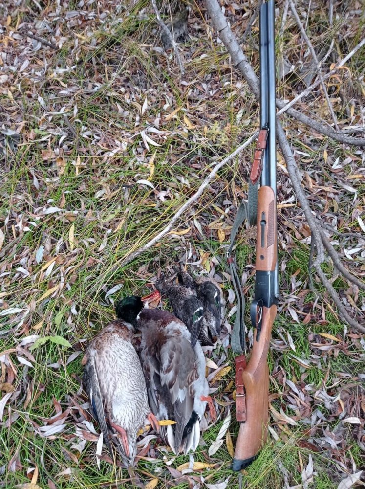 Смотрите утку по согре. А в согре, на плёсе, воды по колено, вся охота вечером, в темноте не стрелял, утка не просто летела, а валом шла, на чучела падала, как с добрым утром. Как и говорил, серая и несколько крякашей сбил. Если быть точнее, за две вечерние зорьки, добыл 27 штук, остальные 15 напарник. Много мазали, из-за кустов не всегда видел налёт. Утром не ходил, уток теребил. Смотрите, куда вечером утка летит. Три дня были, день убили, на наблюдение. Если есть время, скатайте, Если бы не начали искать, домой вернулись бы пустые.