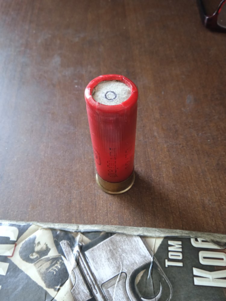 Вопрос решен,картонка сверху пыжа н24био и вот такая пятерка(35 гр.дробь номер 5,,2,1 гр."Сокола").