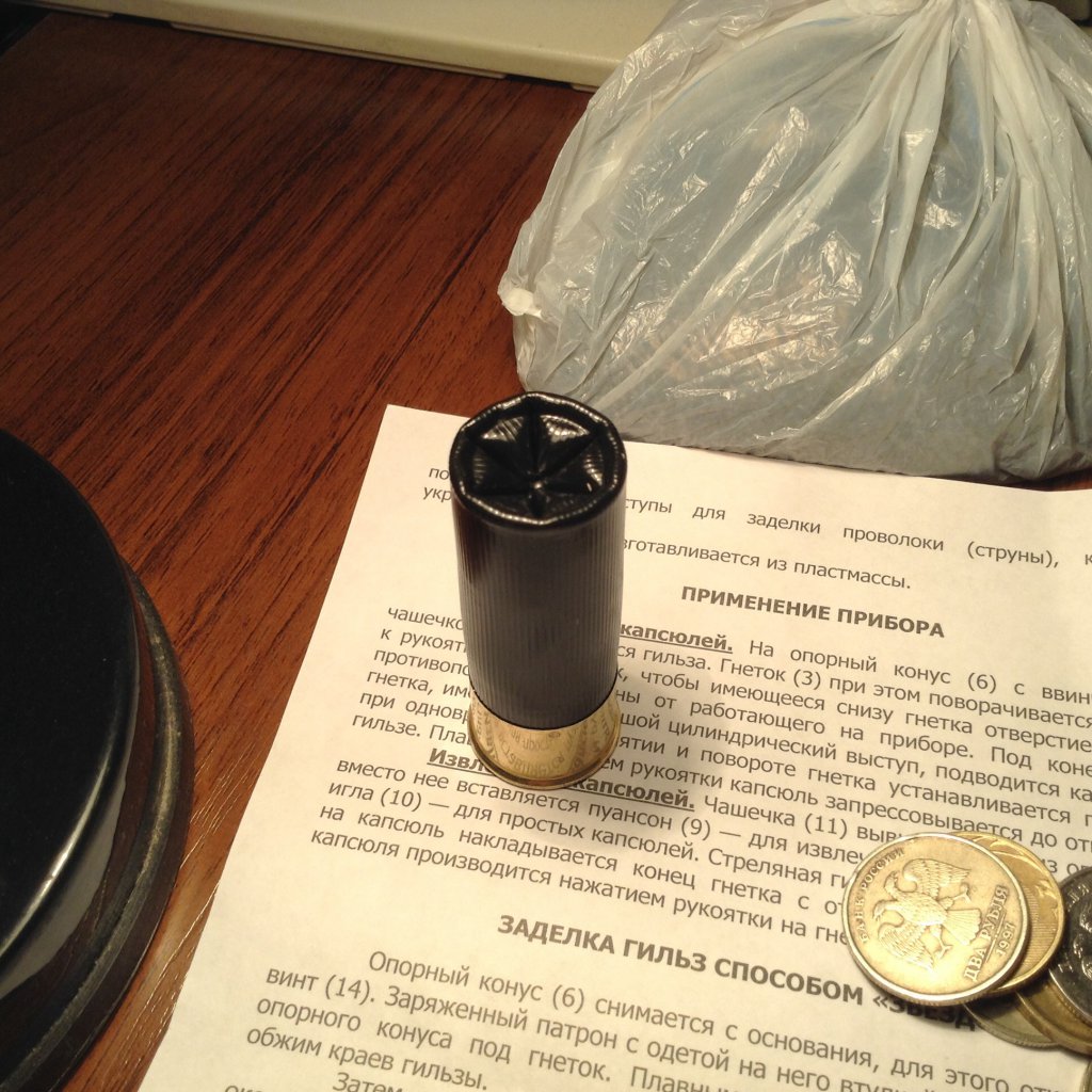 Да, обшибся малец, высота вроде 11 мм как в инструкции, но видимо при опресовке ужалось. Я так понимаю пол пыжа надо было еще перед дробью воткнуть? Да и матрица от УПС-5 оставляет желать лучшего, скоро что-нибудь получше куплю. Остро встал вопрос опресовки донца, буду заказывать наборчик.