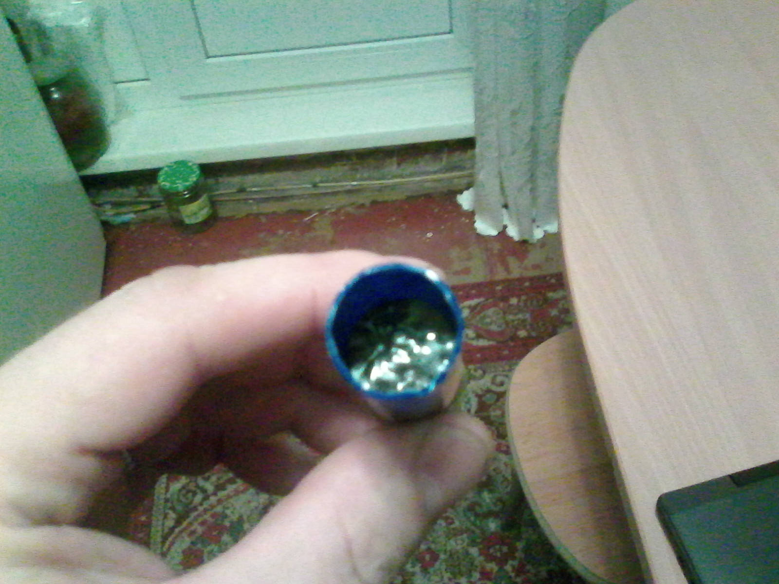 Под дробью какая-то странная клеенка приклеена к пыжу. Дальше выглядело так.