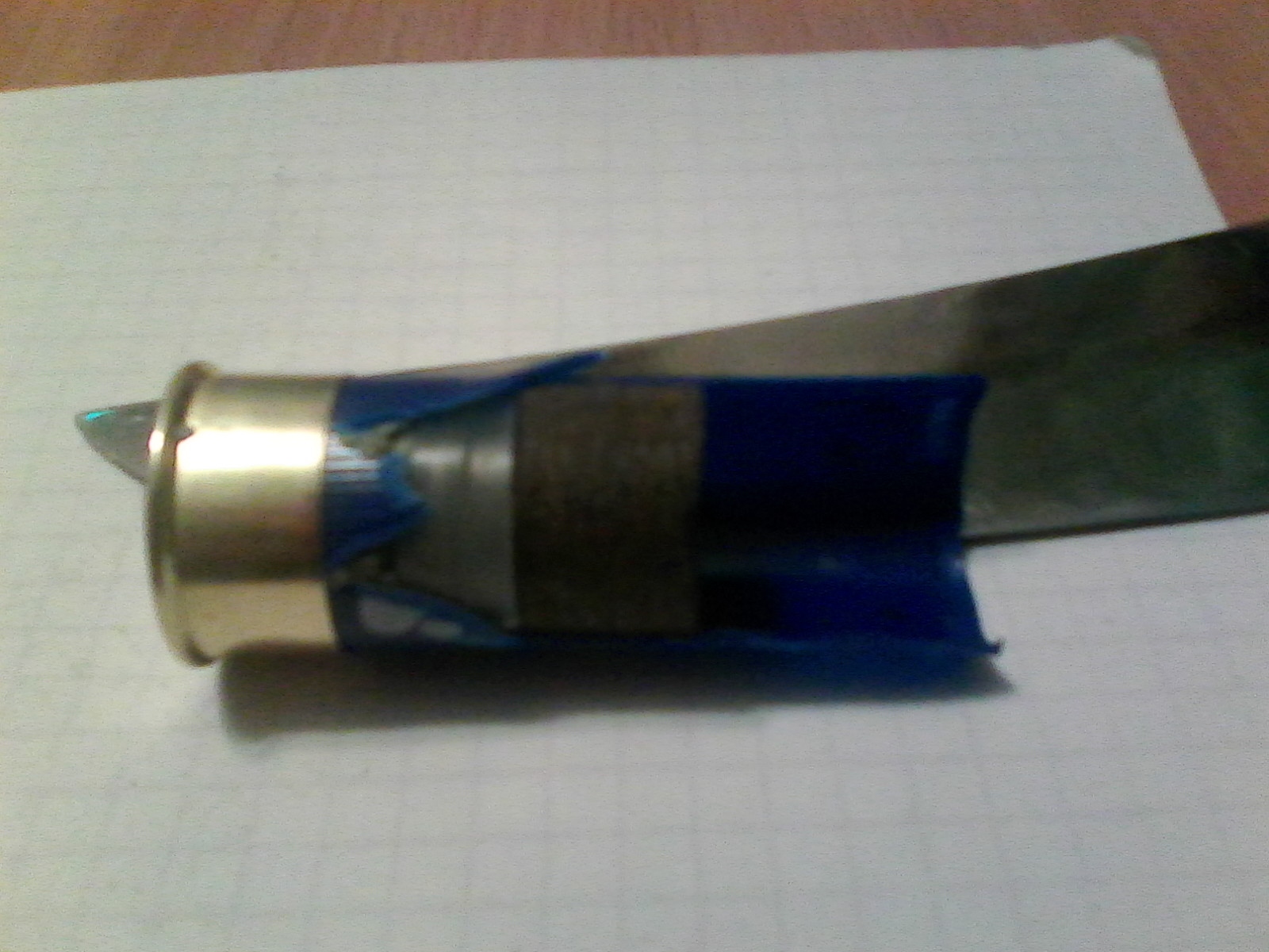 А пулевые начал снаряжать, так первую партию тоже "звездил"...Пули колпачковые самолейки подкалиберные Lee...Только они у меня полегче заводских: 24 гр. вместо 28...А потом начал просто закрывать "шалашиком" (первая стадия заделки дульца гильзы "звездой"), как рекомендовал для своих пуль В.Полев...