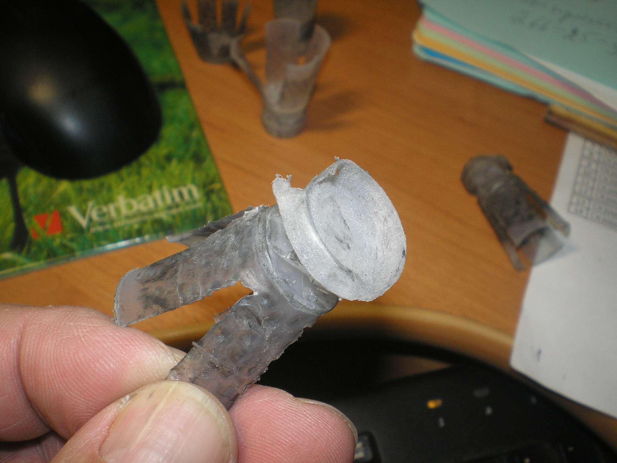 Нашел ПК после отстрела - на 2-х загнулась юбка обтюратора, думаю это произошло в переходе в патронник (мне кажется, что недостающие 6 мм гильзы сказались отрицательно) А в 76-ую гильзу ... патрон собрать не удастся вообще!