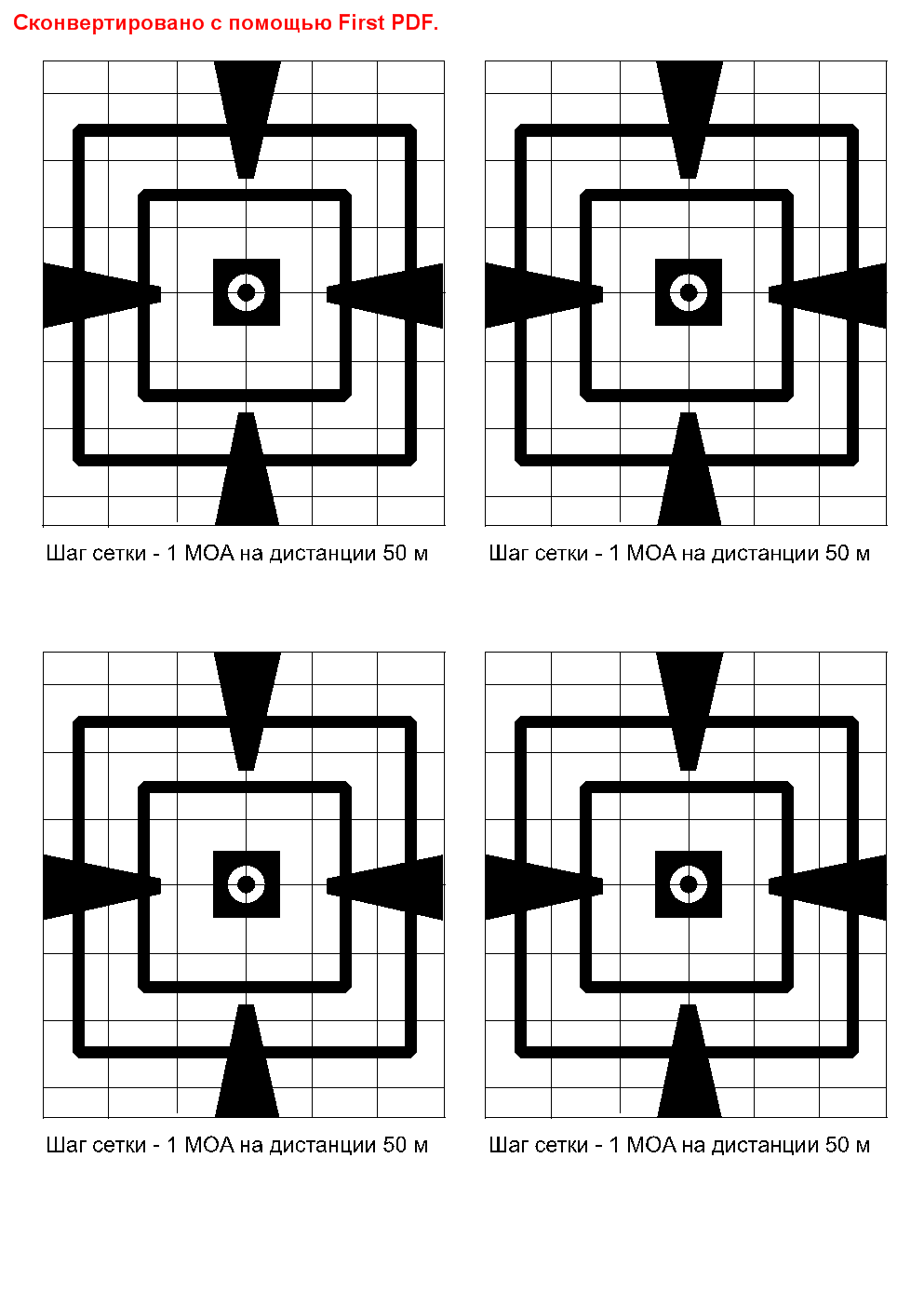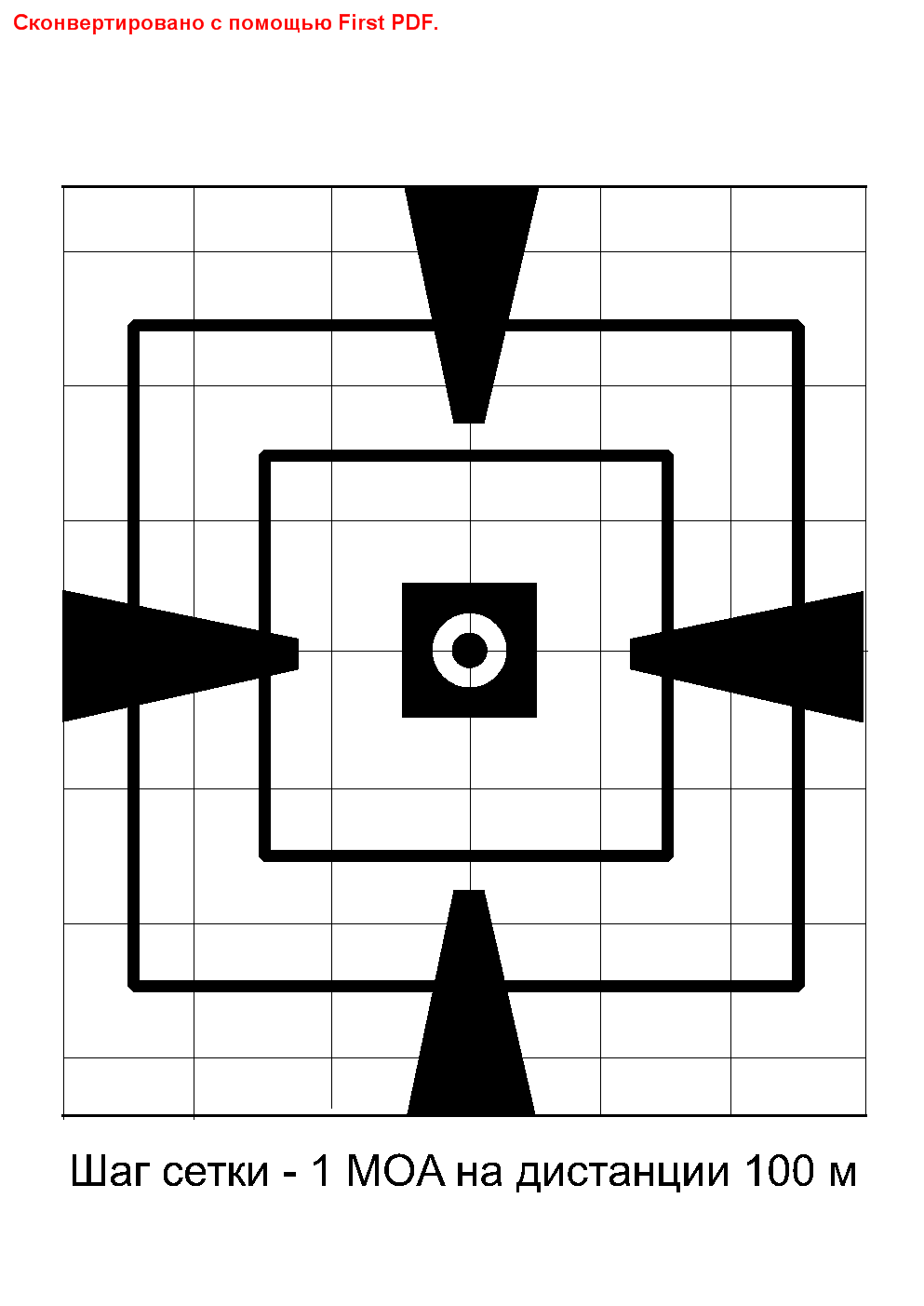 Или Вы мерить не умеете. 1 МОА на 100 м составляет 29.1 мм Распечатал мишеньку на сто, грубо 30мм. Есть некоторые отклонения по квадратам, но это не критично. Вот скан распечатанной мишеньки.