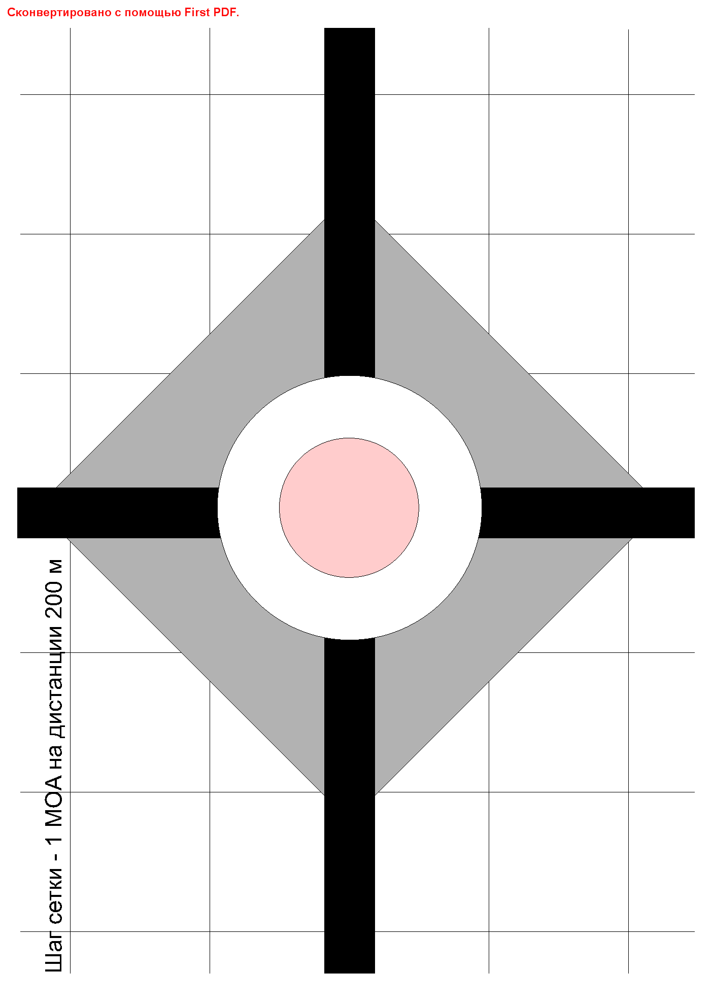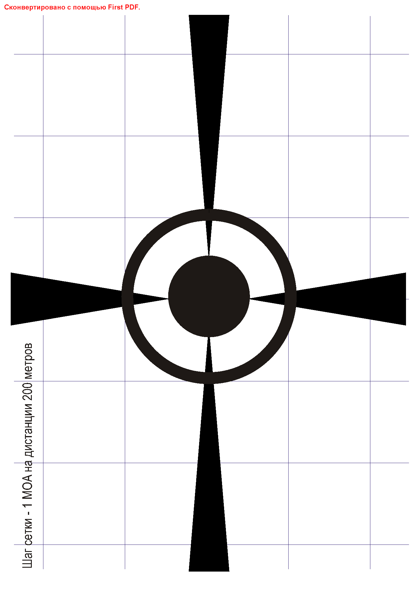 Ну да , я тоже распечатал, взял линейку и..... ни чего не понял. Скорее всего , чтобы соответствовать шагу сетки (1 моа) , мишени нужно распечатывать на другом формате , например А3. Хотя все ИМХО, нужно разобраться.