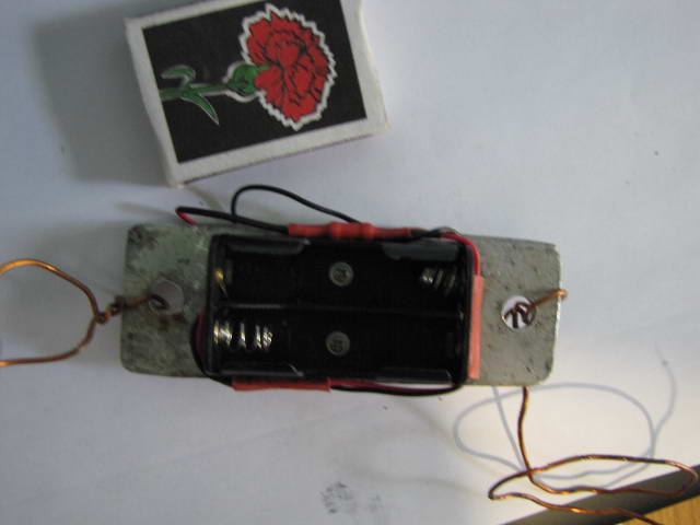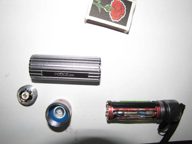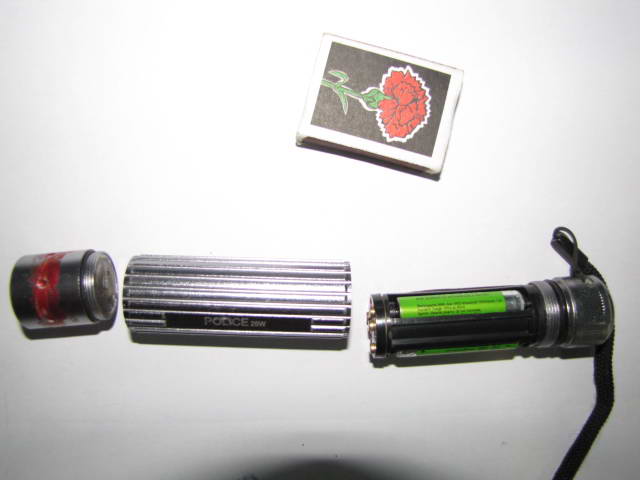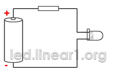 Схема подключения диода. Резистор 1 Ом, 1 Вт. резистор вставлен в "гнездо" одного из элементов питания.