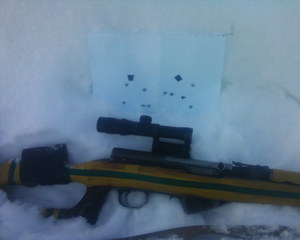 P.S.: Условия стрельбы не идеальные - температура -10 -15 градусов, открытое место (почти что степь), приличный ветер в спину, да еще и упор неудобный с рюкзака на капоте маленькой машинки, поэтому откровенно шатало