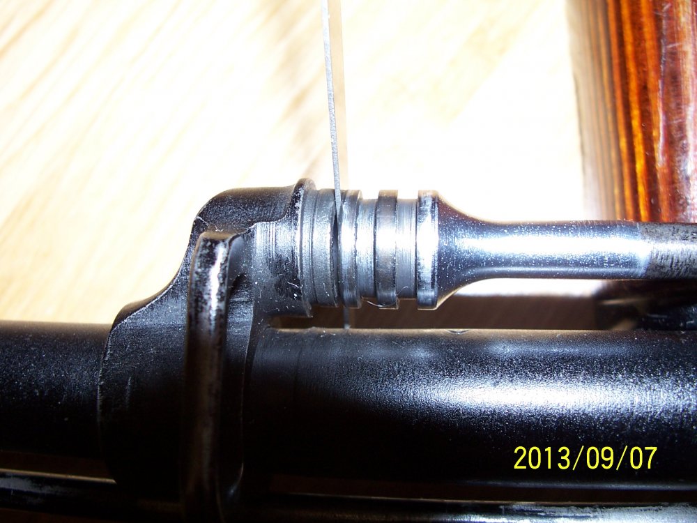 Так измеряется тепловой зазор трубки. И зазор поршня, который у меня равен 0,5мм, при этом поршень не надо тянуть назад вместе с толкателем. В собранном состоянии если дернуть карабин вперед-назад то поршень чутка стучит.