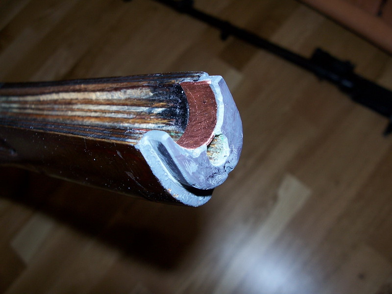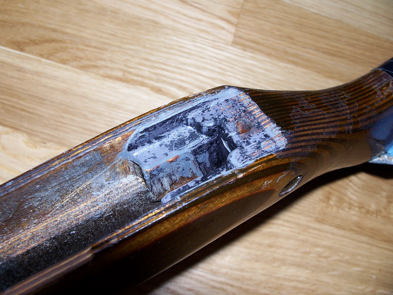 Парни, сделаем так: я заново переписывать не буду. Просто скопирую свои копии из загажников, фото вставлю и т.д. Потому что за год стоко всего передумано! Карабин СКС имеет напряженную систему укладки металла в ложу. Зацепившись кольцом цевья через нагель задняя стойка уходит в ложу. Под ствольной коробкой сзади остается зазор 0,3-1,0мм. Буферная пружина при застегивании УСМ дожимает коробку вниз до полного контакта с ложей. И тут надо оценить самое главное При 1мм зазоре прогиб ствольной коробки составит 21см/100м отклонения оптического прицела напряженного (при застегнутом УСМ)карабина. Я выложу копии там подробно описано. Выводы: 1. Для более точной стрельбы из карабина необходима более жесткая ореховая ложа правильно сделанная с необходимым напряжением системы. В отличии от военной, она сильнее стабилизирует жуткие вибрации системы и позволяет стволу все время стрелять в противофазе разбаллансированных (эксцентричных) пуль как боевых, так и охотничьих. 2. Если ложа военная (родная), то необходимо сделать укладку задней стойки на беддинг постель двухкомпонентным эпоксидным клеем 45 минут застывания. И обязательно подложить под буферную пружину маленькую гайку, тем самы усилив ее напряжение. А лучше поставить задний болт. При этом на конце цевья делается тоже беддинг с вклейкой медной полувтулки под ствол, с зазором под стволом как можно малым!! В пределах меньше 0,01мм Лишь бы ствол при нагреве проскальзывал. По периметру конца цевья контакт полный с кольцом цевья. Это самое главное. Никаких там зазоров. Только спереди и сзади как в наставлении по ремонту. Беддинг конца цевья делается с напряжением системы всего в 6см/100м. Пока хватит. Давайте лучше копии вставлю. Что не ясно, спрашивайте. Как у вас картинки между текстами вставляются? А то придется для каждой картинки пост писать