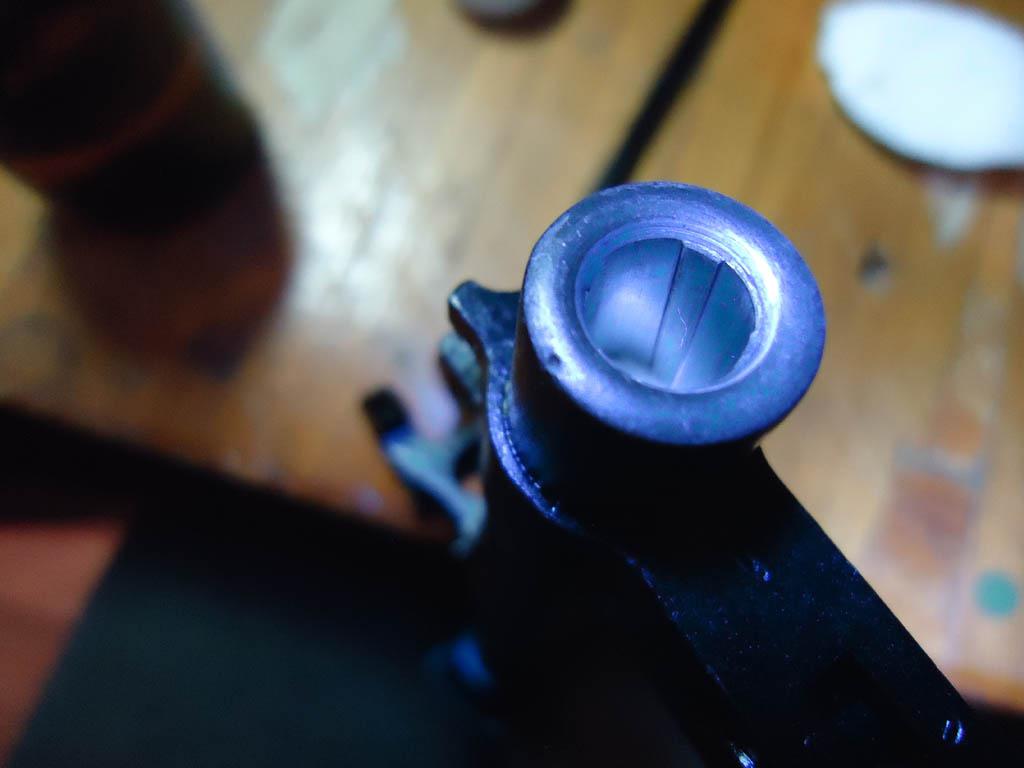Карабин выбрал новый, все на одних номерах, без ремонтных клейм и на ложе тоже ни каких клейм нет - чистая. Ствол черный 7.64 без поджатий, ровный. Был такой-же 7.64 в хроме, но явные перехваты в районе колодки мушки и газоотвода, ну и маленько он пострелял - видно, поэтому отказался от него, а этот вообще без следов настрела. Остальные осмотренные штук 10 по разным магазинам в основном от 7.66 и выше, только парочка 7.65 и что любопытно, в хроме стволы только у трех были, остальные штук восемь - девять черные. Вот еще не понятно, после пристрелки на заводе на точность и для пулегильзатеки медь в стволе остаться должна была? Я его домой принес, удалил смазку. Ствол капроновым ершиком со щелочным маслом от грязи, потом патчами все до зеркального блеска, а потом нашатырем от меди... Тер-тер, ни какой синевы ни капли не вылезло. Может с него вообще не стреляли? Сам выстрелил семь патронов всего и синенва поперла сразу после этого. Про точность... Поехал на скорую руку пострелять в ближайшие угодья куда путевка есть. Разложился на капоте, мишеньку лист А4 с черным кругом унес метров за 80, прицела ясен пень нету, черный круг не вижу толком... стреляю в лист пять штук. Подхожу посмотреть - а там ни одной отметины. Я слегка офигел, начинаю рассматривать карабин и только тут увидел, что прицельная планка стоит аж на тройке. Куда-то в небо все выпустил. У меня до СКСа не было оружия с регулируемой прицельной планкой, кроме автомата в армии 26 лет тому назад и я забыл ее проконтролировать. Стою еще у мишени карабин рассматриваю и тут звонок - срочно надо в город... Короче вкинул в магазин по быстрому два патрона, планку поправил, отошел от мишени метров на 20 и с рук без опоры в нее впиндюрил... Результат в центре мишени две дырки полтора сантиметра по центрам. Больше не стрелял, срочно уехал, но понял, что стрелять должен карабин нормально, хотя испытал на такой маленькой дистанции.