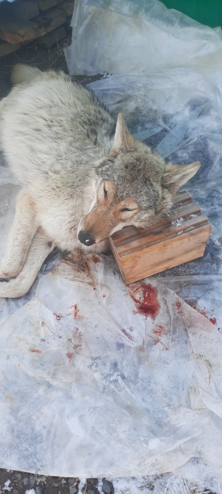 Вот такой волчок. Шкуранул, теперь в муниципалитет за справкой о добыче волка и в охотнадзор акт составлять;)