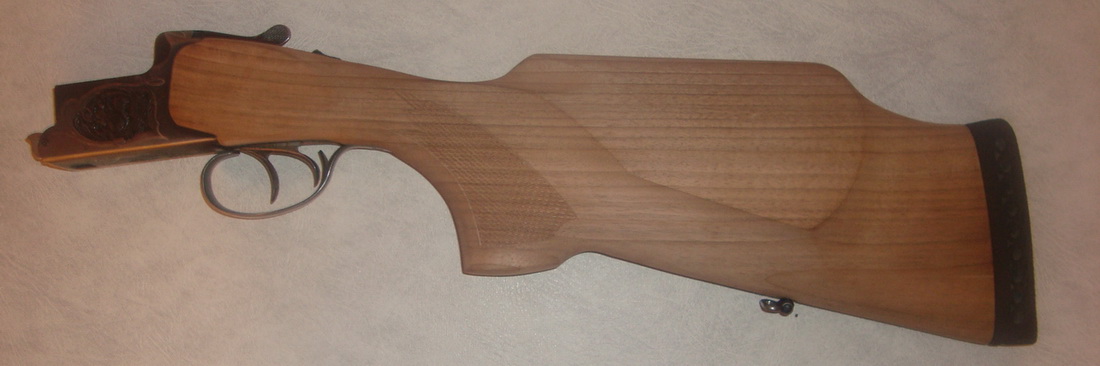 Через неделю приклад уже готов. При вскидке ружья сидит как родной, мушка, планка все на месте. Я в восторге! Линию спинки сверху надо было наверно немного сгладить, но прикладываться очень удобно поэтому решил не просить об исправлении. Дерево - орех грецкий пока не обработано т.к. Игорь Александрович для обработки использует только морилку и все. Хочется по всей технологии с применением льняного масла, воска, натуральной олифы и т.д. Отвезу другому мастеру, обработает - выставлю. А пока вот как выглядит