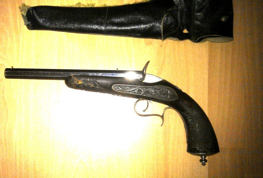 мое мнение: оставить нужно себе и передавать дальше по наследству, как семейную память. Но нужно сделать все в соответствии с законом. Нужно конечно сначала определить модель, так как я точно знаю, что на дульнозарядное оружие лицензия не нужна. Но там какая то есть особенность и она зависит ИМЕННО от технических характеристик. Т.е. по какому то признаку оно может признаться оружием , а по какому то нет. Но тут похоже и правда пистоль под патрон. Надо пошерстить инет на предмет перевода боевого в макет. Например залить ствол свинцом, спилить боек(если таковой имеется).