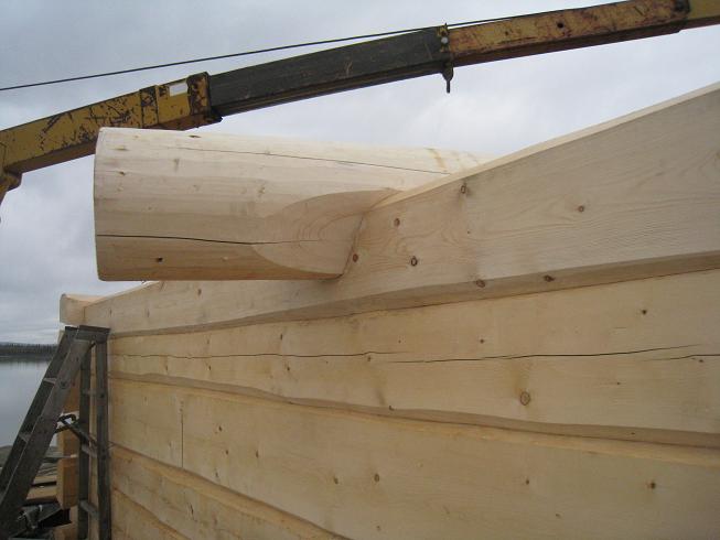 К сожалению этот лафетный проэкт был безумен,благодаря пожеланиям "клиента"(друга,которому помогал отстроится после потопа,но упрямства у него от этого не убавилось).5 стен(нечетное число стен в срубе безумию подобно),и совершенно левые угловые соединения,но хоть матица была врублена "норвежкой"-очень понравилось-легче круглой чаши намного.