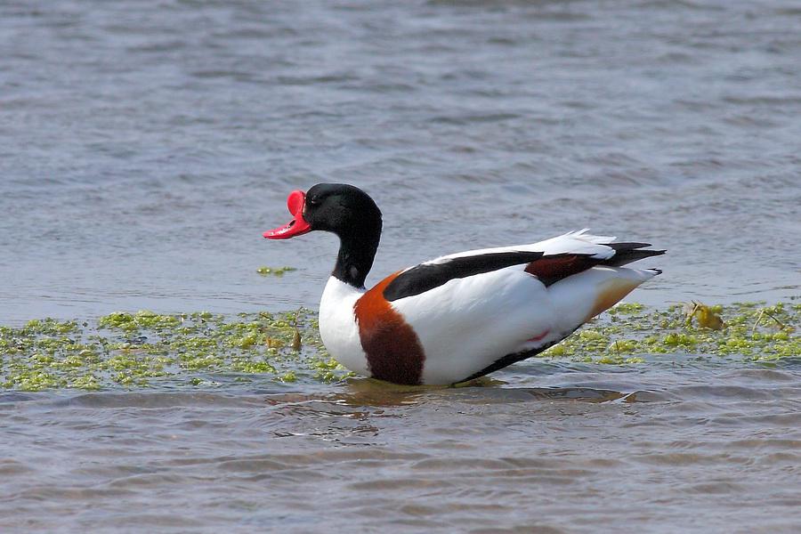 Пеганка . Крупная утка встречается редко. Вес 1-1.5кг. Раскраска пёстрая,пегая,за что и получила своё название. У селезня зоб,задняя часть шеи,спина,поясница, верхние кроющие перья хвоста и рулевые,кроме вершин ,белого цвета. Голова и передняя часть шеи,концы рулевых перьев,широкая полоса вдоль середины груди и брюха блестяще-чёрные. Грудь и переднюю часть спины охватывает широкий пояс коричнево-красного цвета. Клюв широкий,плоский,ярко-красный у самца. Весной в надклювье появляется нарост, а у самок белый ободок.Ноги розовые. Летают молча,хорошо плавают,но не ныряют. У нас распространена от Казахстана до оз.Чаны.
