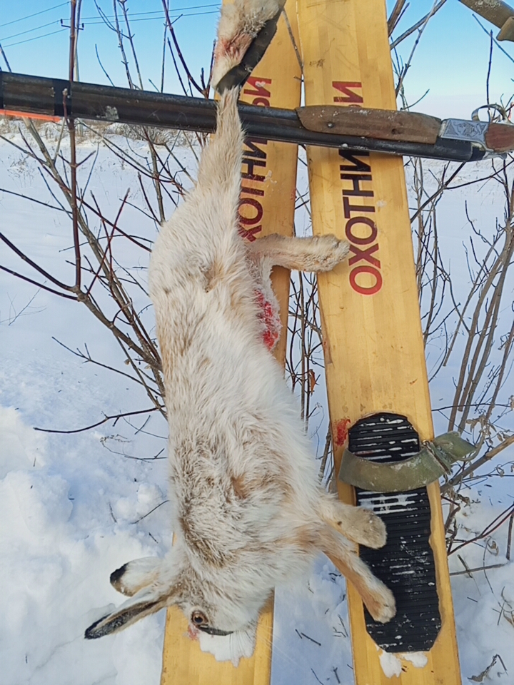 Стрелять надо с открытыми глазами (бинокулярная стрельба) и всегда даже при королевском выстреле, налетает встречная цель выше роста,- вскидка и видно цель не ведущим глазом, а ведущий быстро, за счёт яркости мушки, 'сажает' пятно на середину профиля планки и корпусом делается упреждение, видимое не ведущим глазом и королевский выстрел становится простым, таким же как и боковой или угонный. С возрастом вообще, если по кустам слетит, то вообще невозможно выцеливать- всегда таскаю запасную в рюкзаке и например в 75 лет прошлый сезон взял 10 зайцев, то в этом, в 76 лет 9 зайцев.Другие трофеи(пернатые) тоже добывались и в больших количествах.