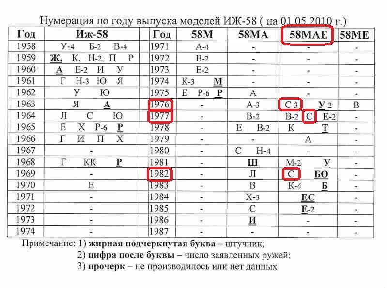 @osv, Здравствуйте, стал обладателем ИЖ-58мае 81 года с номером на букву М. Подскажите пожалуйста, судя по данной таблице, у меня один ИЖ из двух?