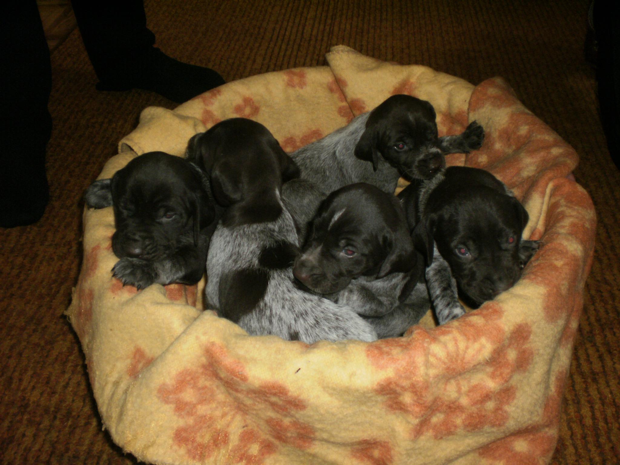 28 марта родились щенки курцхаара: 4 кобеля и 1 сука, все кофейно-пегии.