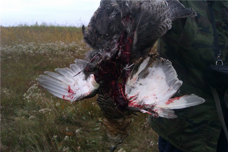 В восресенье, крякаш, метров 25, на влете в спину (подло поступил ), "отверствиев" штук 8-10 (не считал ), самокрут дробь №6 твердая - при употреблении ни одной дробинки в "туловище" обнаружено не было! Наверное ... растворились!